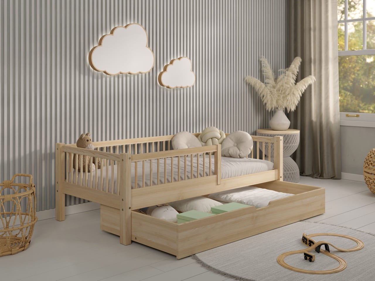 Our cots are painted with safe and environmentally friendly water-based paints that meet the highest quality standards. Thanks to the certificate that fulfils the PN-EN 71-3 standard, you can be sure that the product you buy for your child is safe and does not harm the environment. The water-based paints we use are not only safe for the health of the little ones, but also easy to keep clean and durable. They give the cots a unique look and durability, ensuring a healthy and comfortable sleep for your child.