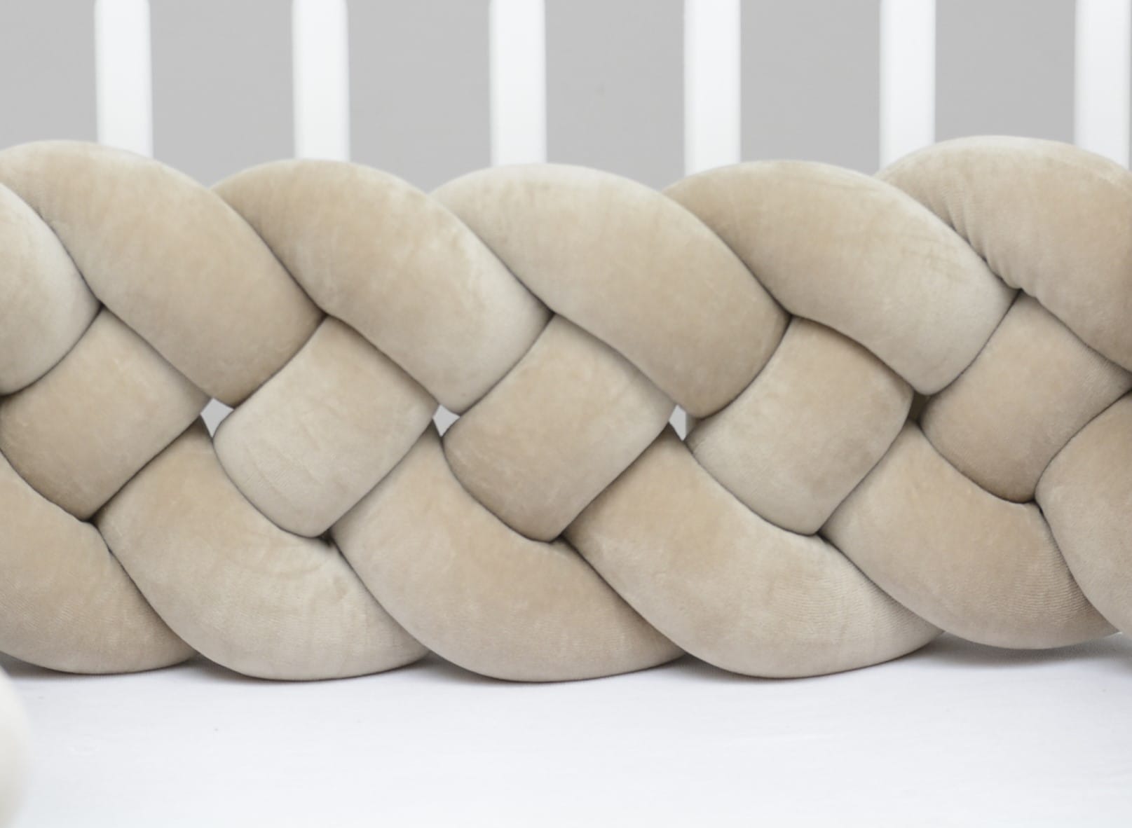 Ett 4-strängigt flätat spjälskydd säkrar sängens sidor och skyddar ditt barn från slag eller från att klämma fast ben och armar mellan spjälorna, dessutom isolerar det från kalla väggar.