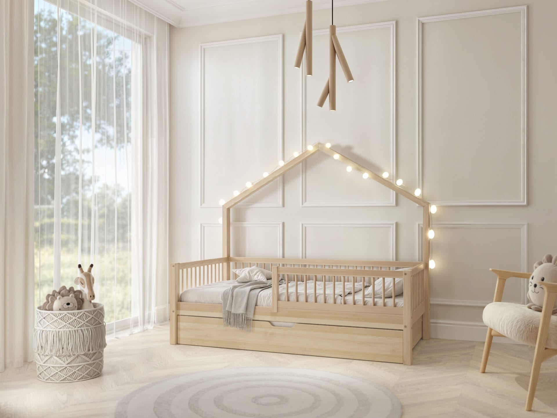 Våra barnsängar är målade med säkra och miljövänliga vattenbaserade färger som uppfyller de högsta kvalitetsnormerna. Tack vare certifikatet som uppfyller PN-EN 71-3-standarden kan du vara säker på att produkten du köper till ditt barn är säker och inte skadar miljön. De vattenbaserade färgerna vi använder är inte bara säkra för barns hälsa, utan också lätta att hålla rena och motståndskraftiga mot slitage. Tack vare dem får barnsängarna ett unikt utseende och hållbarhet, vilket ger ditt barn en hälsosam och bekväm sömn.